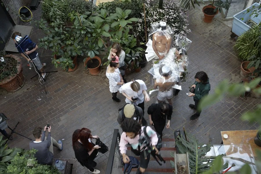 ‘Germination: The Avant-Garden Body-Sculptures’ was a live-sculpture performance filmed in the Barbican Conservatory. It represented personal growth and treating one’s body like a sculpture. This piece of work allowed Philip to revisit his use of plastics. Having explored plastic wrap to keep clay fresh in his live-making performances, this body-sculpture represented the packaging of one’s identity.